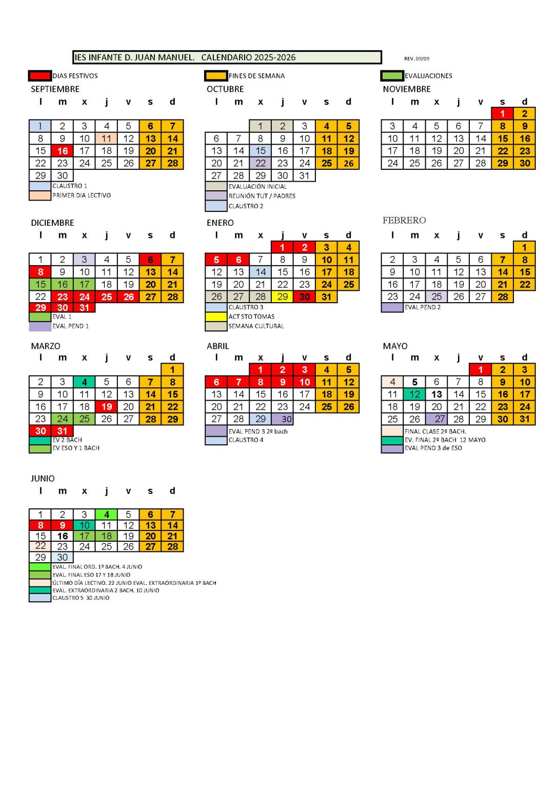 El calendario ha sido modificado, siendo la reunión de los tutores con los padres de cada grupo el día 22 de Octubre.